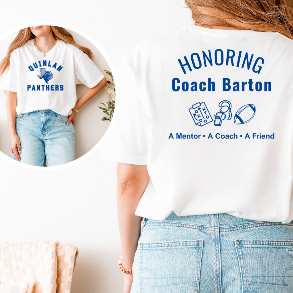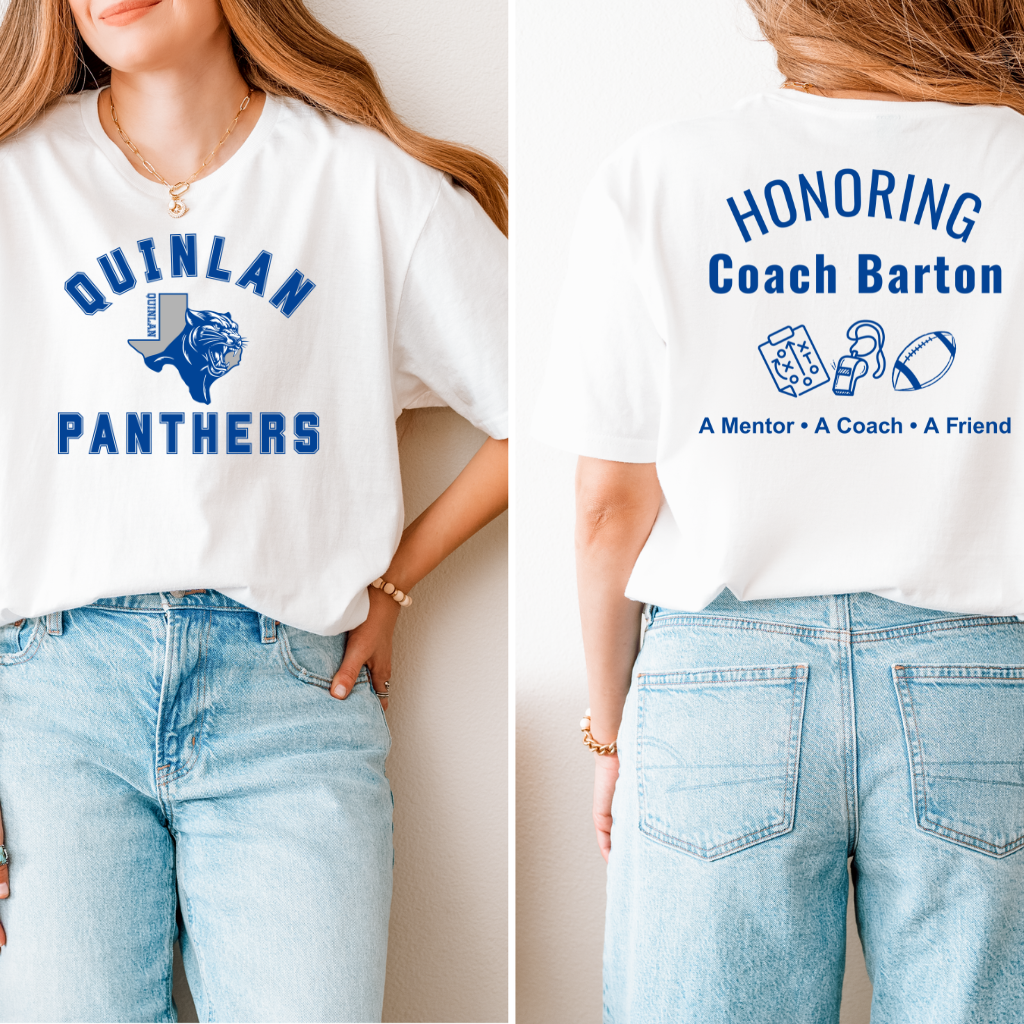 T-Shirt for Barton Memorial - Proceeds go to scholarship. White Gilden SoftStyle tee. Panther blue lettering.