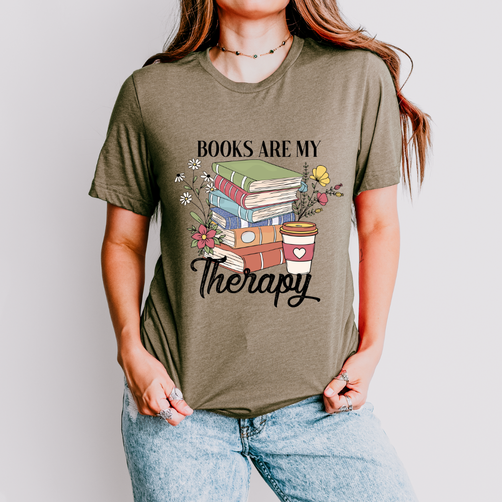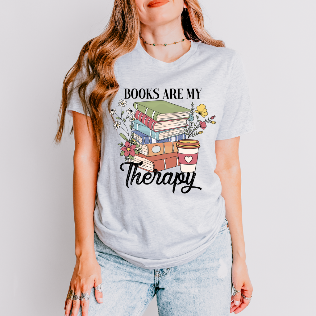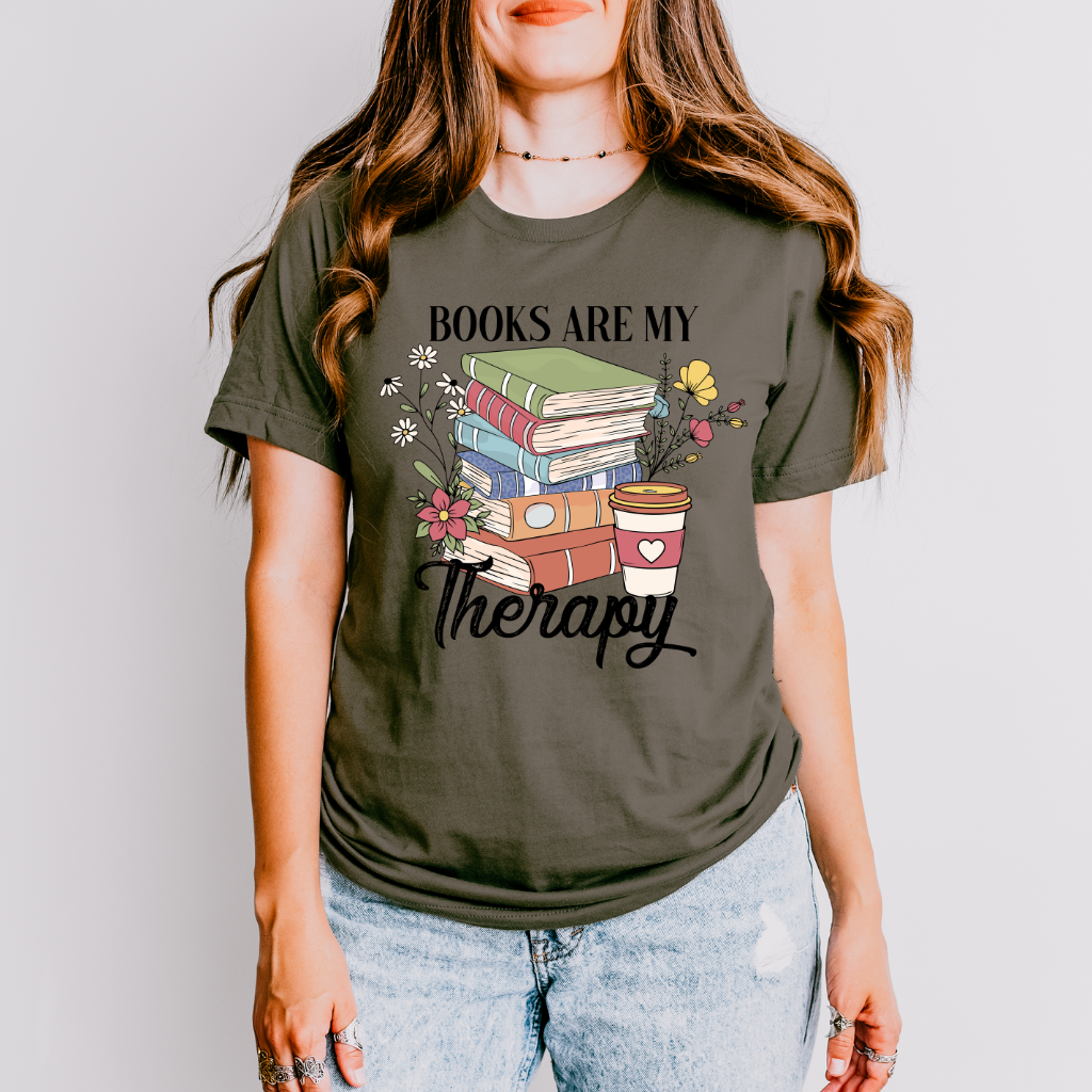 For avid readers, this vibrant print is an ideal choice to wear whether you're immersed in a good book or browsing for your next literary adventure. Experience the perfect blend of style and comfort with this "Books Are My Therapy" print, crafted from soft cotton fabric that feels gentle against the skin, making it ideal for long reading sessions or casual outings.