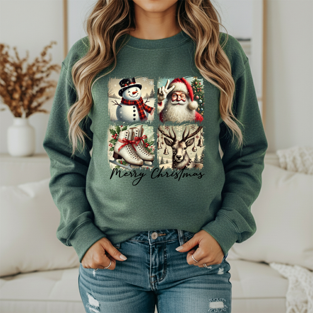 Embrace the holiday spirit with our Peace Love and Santa graphic collection. This square graphic features festive imagery that captures the warmth and joy of the season. Available in both a classic tee and cozy sweatshirt, each piece combines comfortable everyday wear with eye-catching seasonal style. The durable print resists fading, ensuring your holiday look stays vibrant through countless wears and washes. Perfect for spreading Christmas cheer at gatherings, casual outings, or relaxed home days. Whether you prefer the lightweight breathability of cotton or the extra warmth of a sweatshirt, this collection delivers quality craftsmanship and timeless holiday appeal.